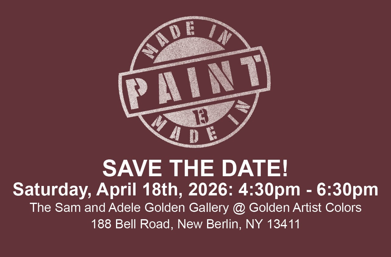 In the beautiful rolling hills of central New York and just several hundred yards from the Golden Artist Colors manufacturing facility, a 19th century barn has been transformed into a 21st century artist residency, with large studio spaces and private residency apartments. Artists-in-residence will participate in a completely unique opportunity to explore the widest, most innovative range of materials and technology available today for professional artists working with paint.